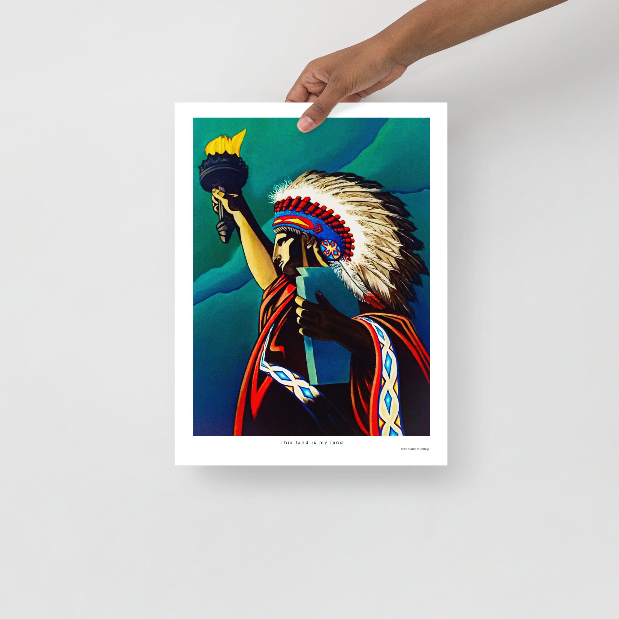 The original piece was created on a massive canvas, reflecting the true scale of the Statue of Liberty and emphasising its imposing presence. Through this work, Pete offered a powerful commentary on the lands taken from Indigenous peoples in the Americas.
